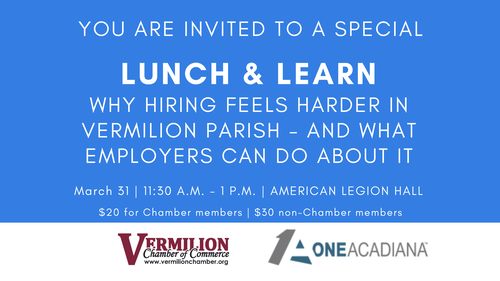 Across Vermilion Parish, employers are experiencing a tighter labor market, faster turnover, and shifting workforce expectations. This Lunch & Learn will provide clarity on what has changed — and what businesses can realistically do about it.